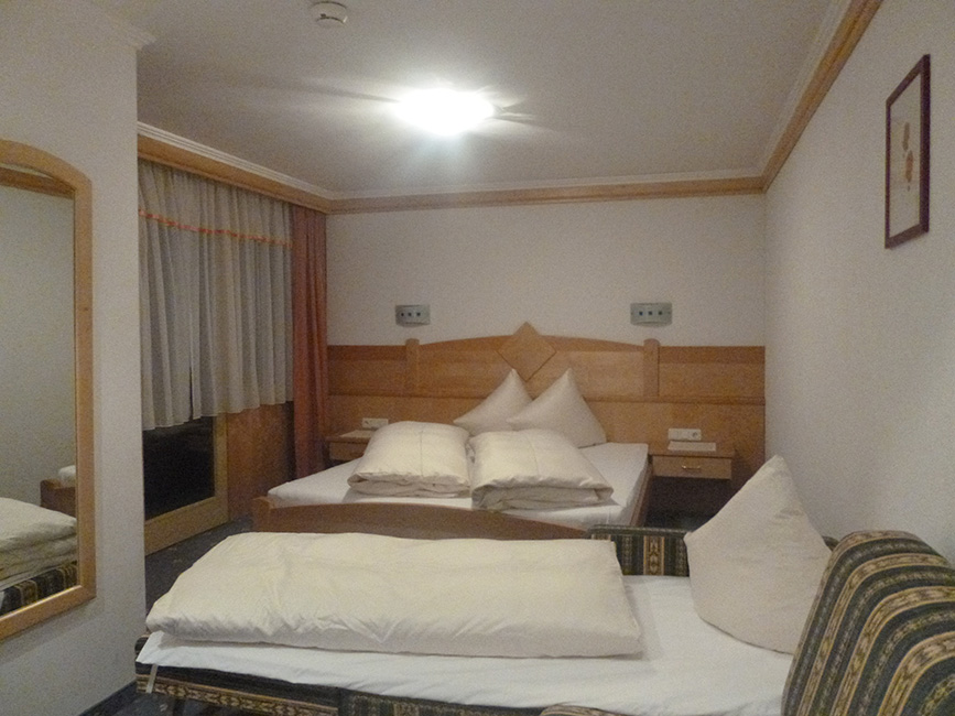 Lower ground floor (open to the valley), approx. 100 m². Access to the apartment via elevator in the hallway. Eat-in kitchen (4 hotplates, oven, microwave, dishwasher, refrigerator, coffee maker, kettle) with a large dining area (corner seat). 1 bedroom with double bed and sofa bed. 1 bedroom with double bed, 2x single beds, sink and toilet (no window in the room) 1 bedroom with 1 double bed, 2x single beds and shower/toilet (no window in the room) 2 bedrooms have no windows, but automatic ventilation. 1 bath/shower. 1 separate toilet. There is a carpentry workshop above the apartment and you can hear the noise of the machines during the day.
